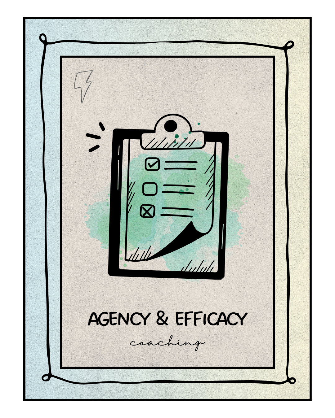 Coaching to increase agency and efficacy will focus on identifying your goals, clarifying your obstacles, and developing actionable strategies to move forward with confidence.